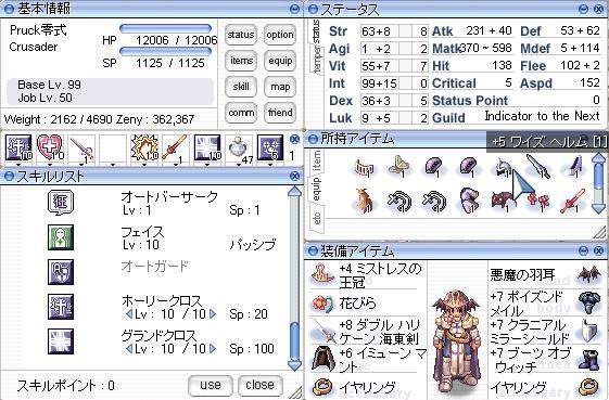 INT124、STR80、VIT62、DEX49。(支援込み)